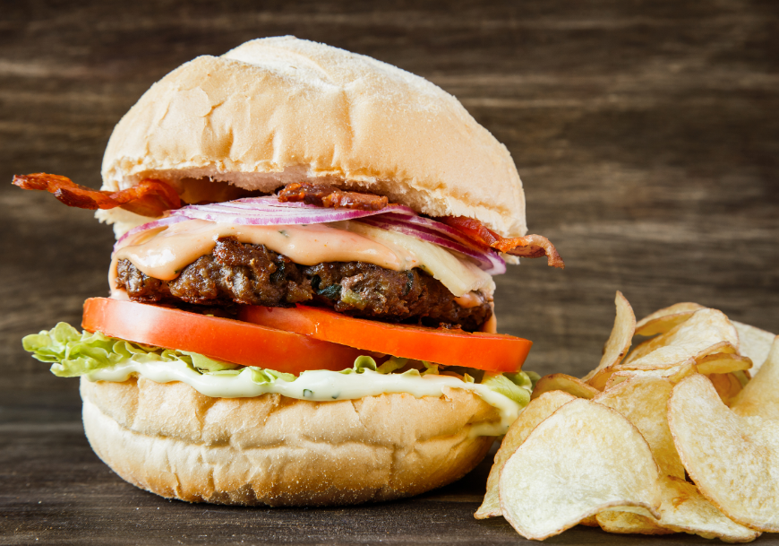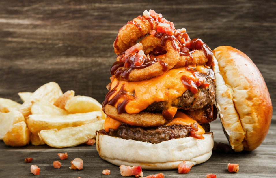 No Bávaro você vai encontrar o Double Picanha Smash Bacon – Pão com gergelim, 2 smash burguers de picanha, queijo cheddar inglês, alface, tomate, bacon crocante em tiras e cebola crispy com mix de batata rústica, onion rings e com molho Jack Daniel’s Barbecue.