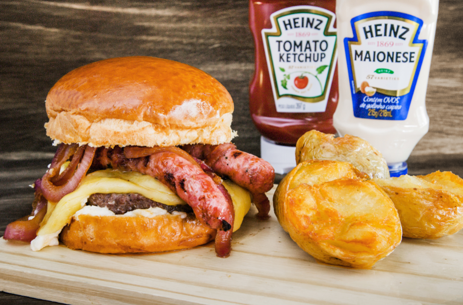 O Barba Hamburgueria, peça o John Bowen com Pão brioche, hambúrguer bovino, maionese caseira, queijo muçarela, queijo prato, linguiça bizinelli e cebola defumada. Acompanha batata frita caseira.