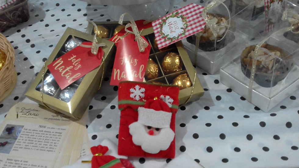 Como é natal, nada mais justo que comprar delícias da época nas barraquinhas de artesanato gastronômico. São panetones, bombons, biscoitos e outras gostosuras para saborear, dar de presente ou rechear sua árvore de natal.